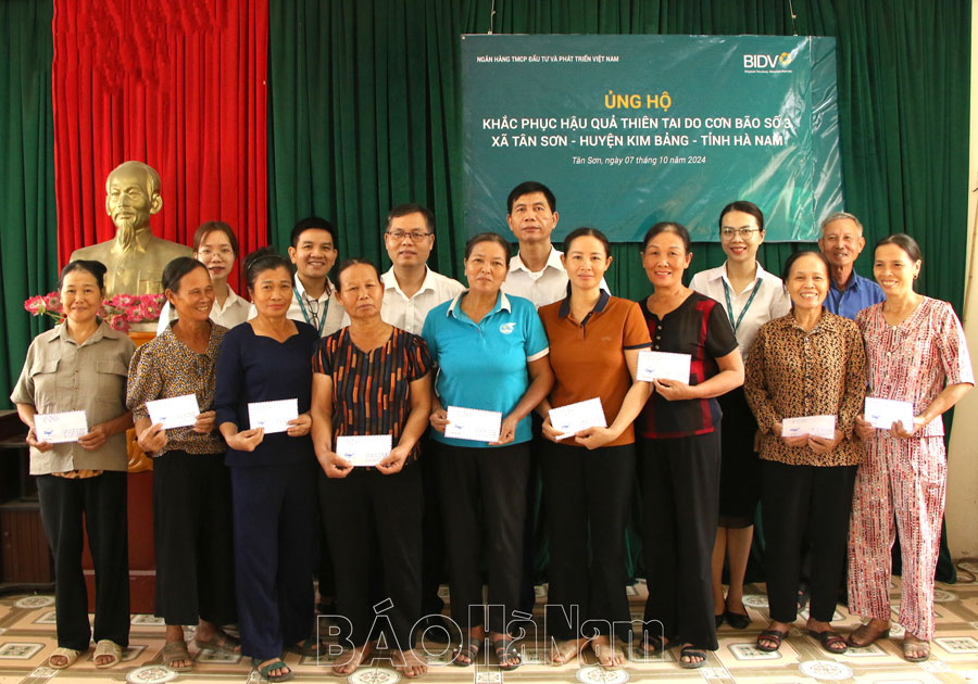 Từ ngày 8-10/10, Công đoàn Chi nhánh Ngân hàng Thương mại cổ phần Đầu tư và Phát triển (BIDV) Hà Nam đã trao ủng hộ 700 triệu đồng cho đồng bào bị ảnh hưởng bão số 3 và hoàn lưu của bão tại hai huyện Kim Bảng, Thanh Liêm.
