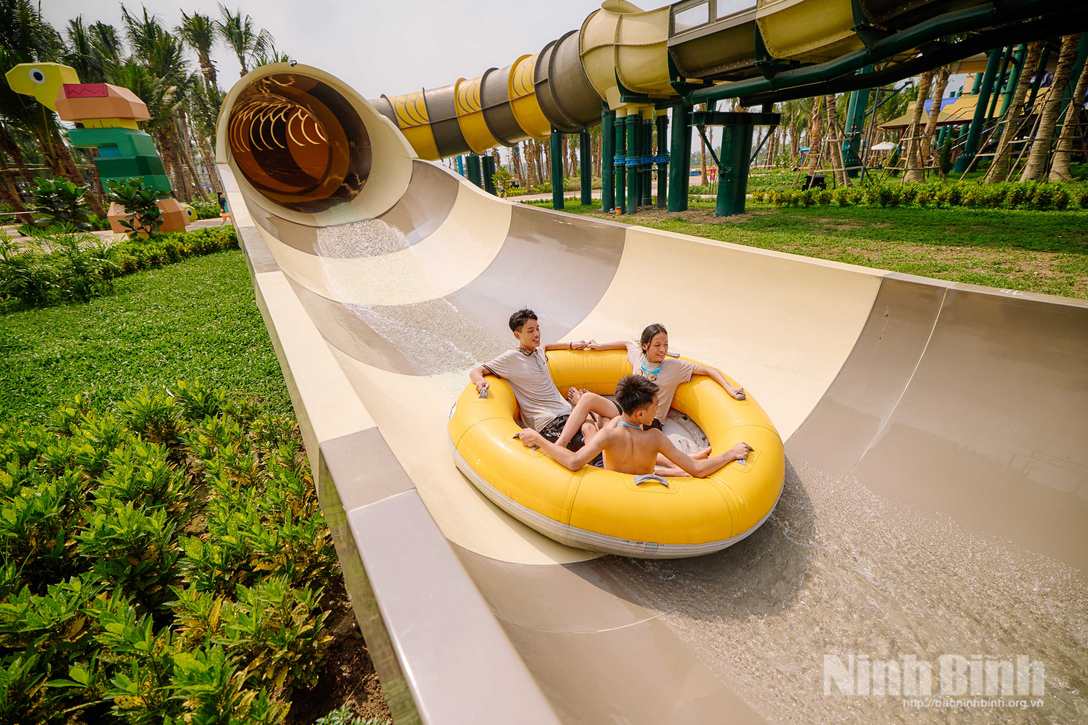 Du khách và người dân có cơ hội trải nghiệm hệ thống trò chơi nước hiện đại với nhiều đường trượt đạt tiêu chuẩn quốc tế.