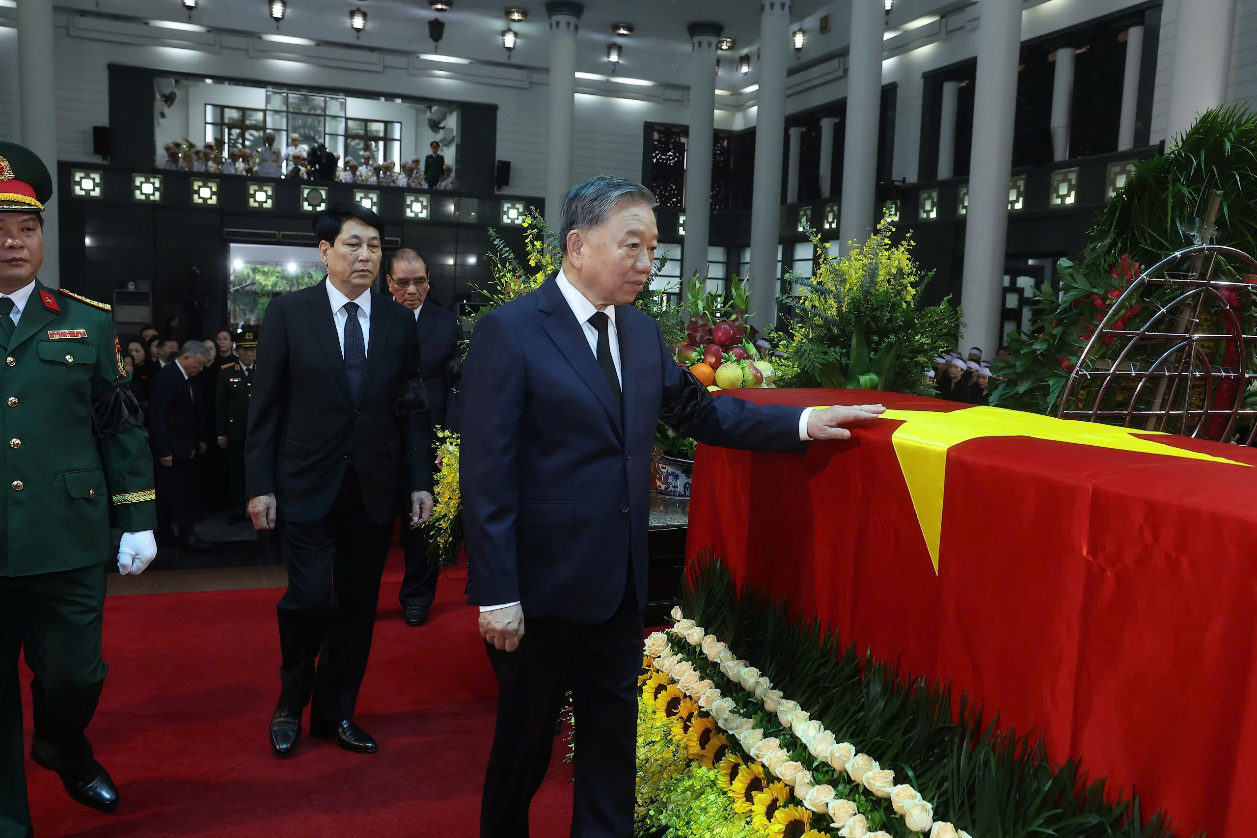 Trong niềm tiếc thương vô hạn, Đoàn Ban Chấp hành Trung ương Đảng do Tổng Bí thư Tô Lâm làm Trưởng đoàn vào viếng đồng chí Trần Đức Lương và chia buồn cùng gia quyến.