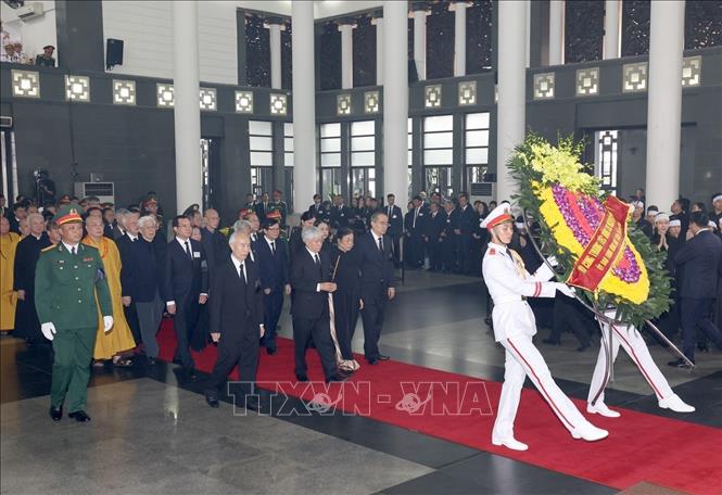 Trong niềm xúc động, tiếc thương sâu sắc, từ sáng sớm, các đoàn đại biểu Đảng, Nhà nước, Quốc hội, Chính phủ, Mặt trận Tổ quốc Việt Nam, các bộ, ban, ngành, cán bộ, chiến sĩ các lực lượng vũ trang cùng đông đảo tầng lớp nhân dân Thủ đô và nhiều tỉnh, thành phố trong cả nước đã tập trung tại khu vực Nhà Tang lễ Quốc gia - số 5 Trần Thánh Tông (Hà Nội) dự Lễ viếng Tổng Bí thư Nguyễn Phú Trọng - Nhà lãnh đạo đã có nhiều công lao to lớn, đặc biệt xuất sắc đối với sự nghiệp cách mạng vẻ vang của Đảng và dân tộc.