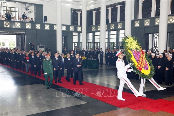 Các đồng chí lãnh đạo, nguyên lãnh đạo Đảng, Nhà nước, Mặt trận Tổ quốc Việt Nam đã đi vòng quanh linh cữu, xúc động vĩnh biệt Tổng Bí thư Nguyễn Phú Trọng - Nhà lãnh đạo đặc biệt xuất sắc, một tấm gương sáng ngời về học tập, làm theo tư tưởng, đạo đức, phong cách Hồ Chí Minh, người đảng viên cộng sản kiên trung, có uy tín lớn của Đảng, Nhà nước và nhân dân ta, hiện thân đầy đủ phẩm chất, tài năng, bản lĩnh, trí tuệ của thế hệ lãnh đạo Việt Nam thời kỳ đổi mới.