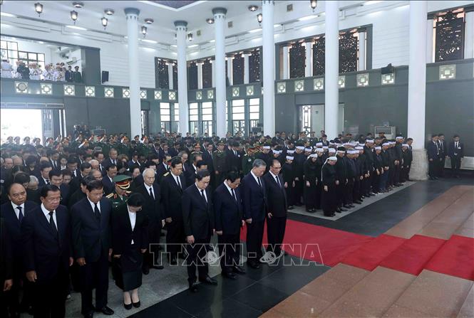 Vô cùng thương tiếc Tổng Bí thư Nguyễn Phú Trọng, các đồng chí lãnh đạo Đảng, Nhà nước, Mặt trận Tổ quốc Việt Nam; đại diện các bộ, ban, ngành, đoàn thể, đồng chí, đồng bào và bạn bè quốc tế đã đi quanh linh cữu lần cuối tiễn biệt đồng chí Nguyễn Phú Trọng, nhà lãnh đạo xuất sắc có uy tín lớn của Đảng, Nhà nước và nhân dân ta.