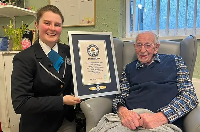 Hai ngày sau khi cụ Juan Vicente Pérez, người đàn ông cao tuổi nhất thế giới qua đời ở tuổi 114, kỷ lục Guinness Thế giới đã trao danh hiệu này cho cụ John Alfred Tinniswood sinh năm 1912 tại Liverpool (Anh).