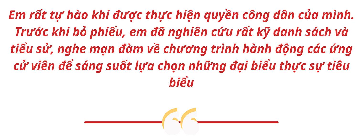 Cùng chung cảm xúc đó, nhiều cử tri trẻ lần đầu tiên tham gia bầu cử không giấu được sự háo hức xen lẫn hồi hộp khi được thực hiện quyền công dân, trực tiếp lựa chọn những đại biểu nhân dân thông qua lá phiếu.