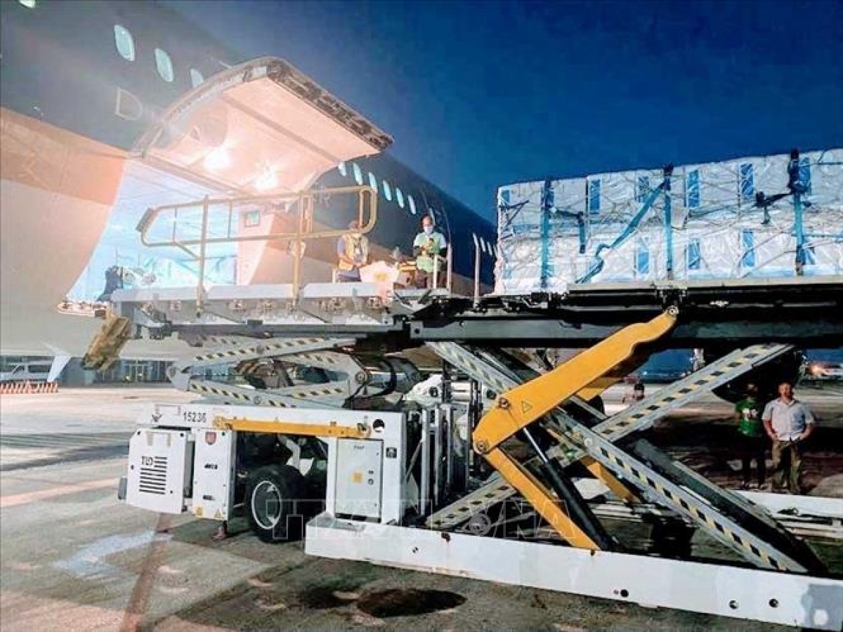 5 triệu liều vaccine Abdala 3 được đưa lên chuyên cơ để chuyển về Việt Nam. Ảnh: TTXVN