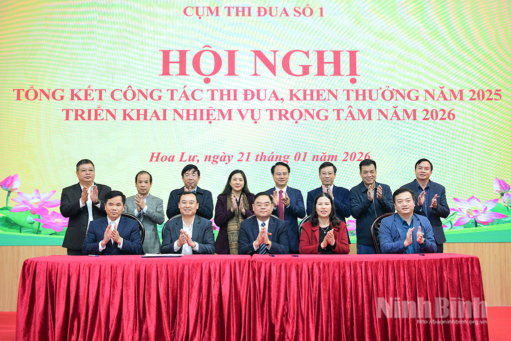 Chiều 21/1, tại phường Hoa Lư, Cụm Thi đua số 1 thuộc UBND tỉnh Ninh Bình tổ chức hội nghị tổng kết công tác thi đua, khen thưởng năm 2025; phát động phong trào thi đua yêu nước năm 2026. Đại diện Ban Thi đua - Khen thưởng tỉnh và lãnh đạo các địa phương trong Cụm Thi đua số 1 dự hội nghị.
