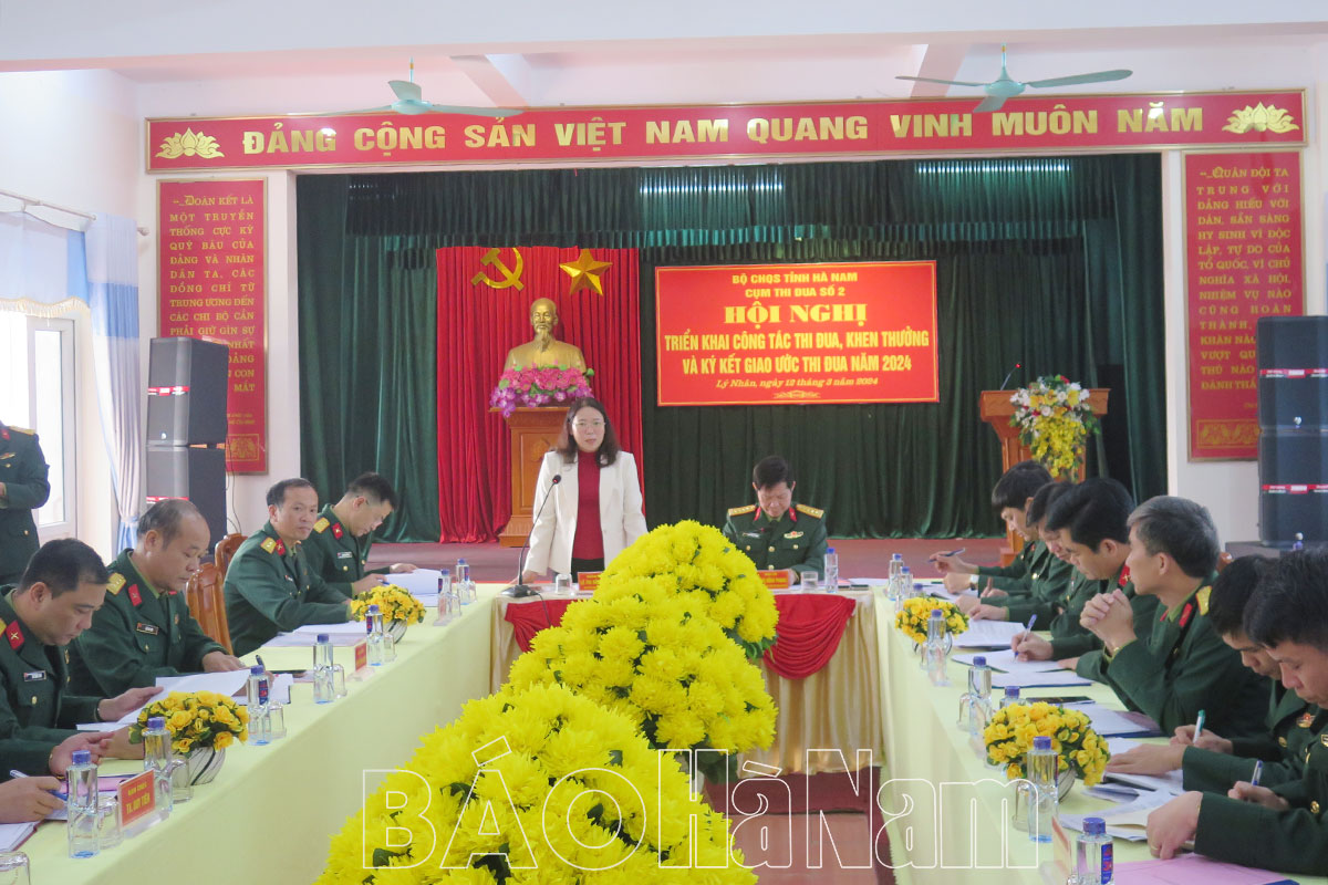 Sáng 12/3, tại Ban CHQS huyện Lý Nhân, Cụm thi đua số 2 thuộc Bộ CHQS tỉnh tổ chức hội nghị triển khai công tác thi đua khen thưởng (TĐKT), ký kết giao ước thi đua năm 2024. Dự, chỉ đạo hội nghị có các đồng chí: Đại tá Trịnh Hồng Phong, Phó Bí thư Đảng uỷ Quân sự tỉnh, Chỉ huy trưởng Bộ CHQS tỉnh; đại diện các phòng, ban của Bộ CHQS tỉnh; đại diện Huyện uỷ Lý Nhân.