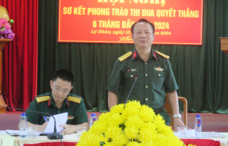 Sáng 13/6, tại Ban CHQS huyện Lý Nhân, Cụm thi đua số 2 Bộ CHQS tỉnh tổ chức hội nghị sơ kết đánh giá kết quả thực hiện phong trào thi đua Quyết thắng (TĐQT) 6 tháng đầu năm; triển khai nhiệm vụ trọng tâm 6 tháng cuối năm.