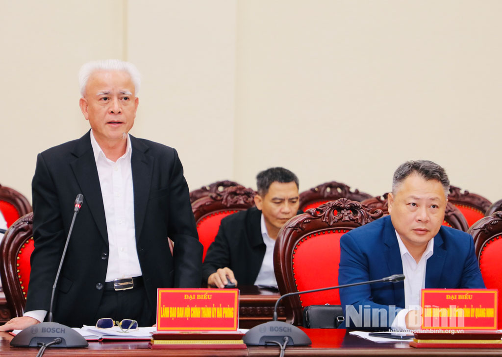 Đồng chí Nguyễn Minh Tiến, Ủy viên Ban Thường vụ Tỉnh ủy, Trưởng Ban Nội chính Tỉnh ủy Ninh Bình phát biểu tại hội nghị.Đại diện lãnh đạo Ban Nội chính Thành ủy Hải Phòng phát biểu tại hội nghị.
