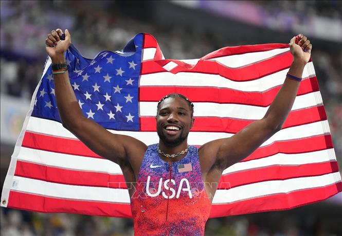 VĐV Noah Lyles của Mỹ giành HCV chạy 100m nam Olympic 2024 ở Paris, Pháp ngày 4/8/2024.