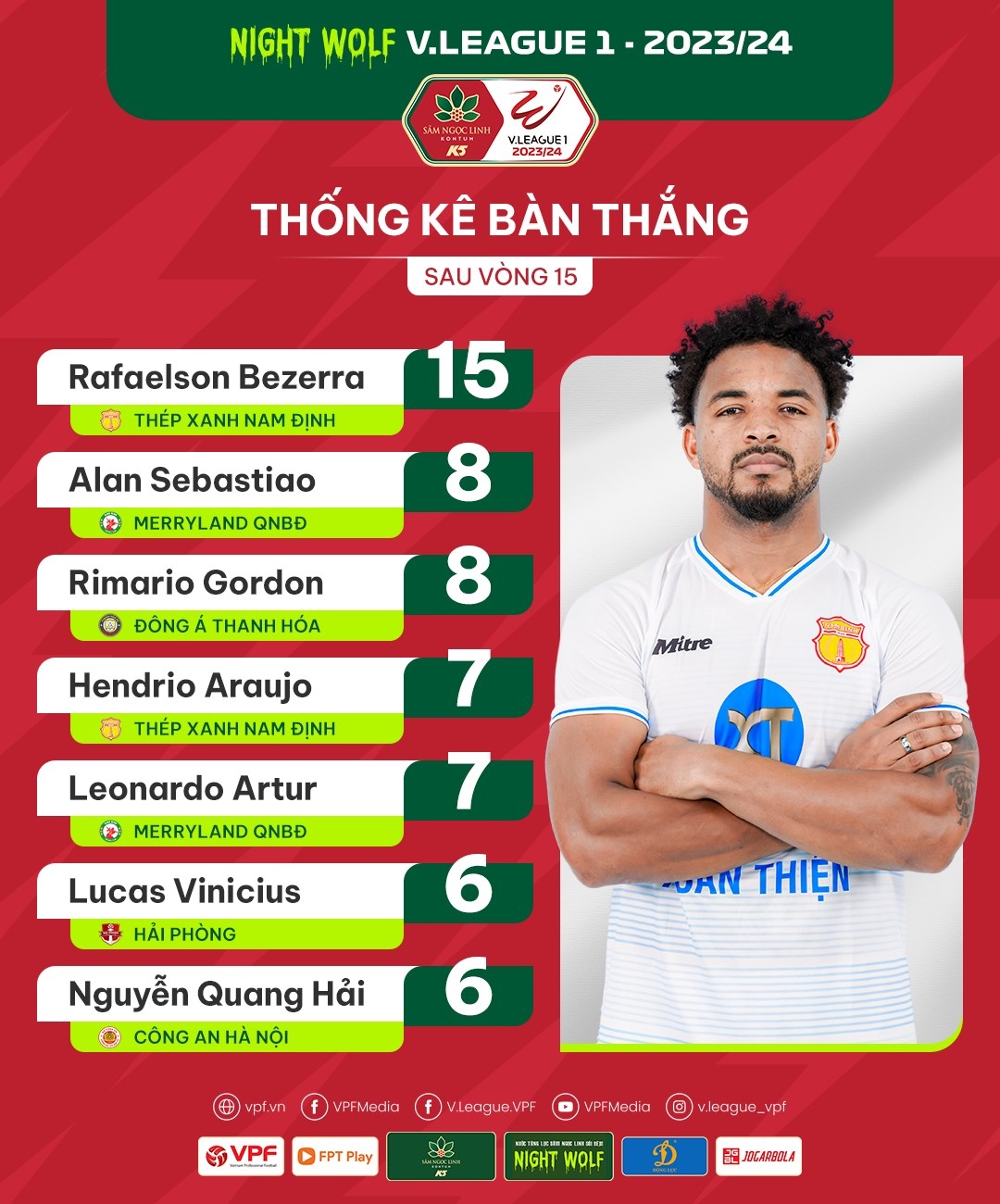 Cuộc đua “Vua phá lưới” V-League 2023/2024: Rafaelson không có đối thủ