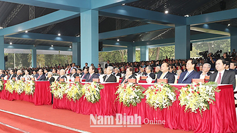 | Các đồng chí lãnh đạo, nguyên lãnh đạo Đảng, Nhà nước và các đại biểu dự Lễ kỷ niệm. Ảnh: Trí Dũng - TTXVN. |