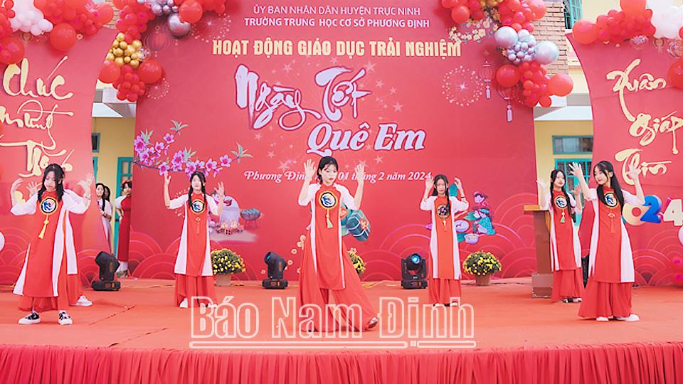 | Văn nghệ biểu diễn trải nghiệm “ngày Tết quê em” của học sinh trường THCS Phương Định (Trực Ninh). |