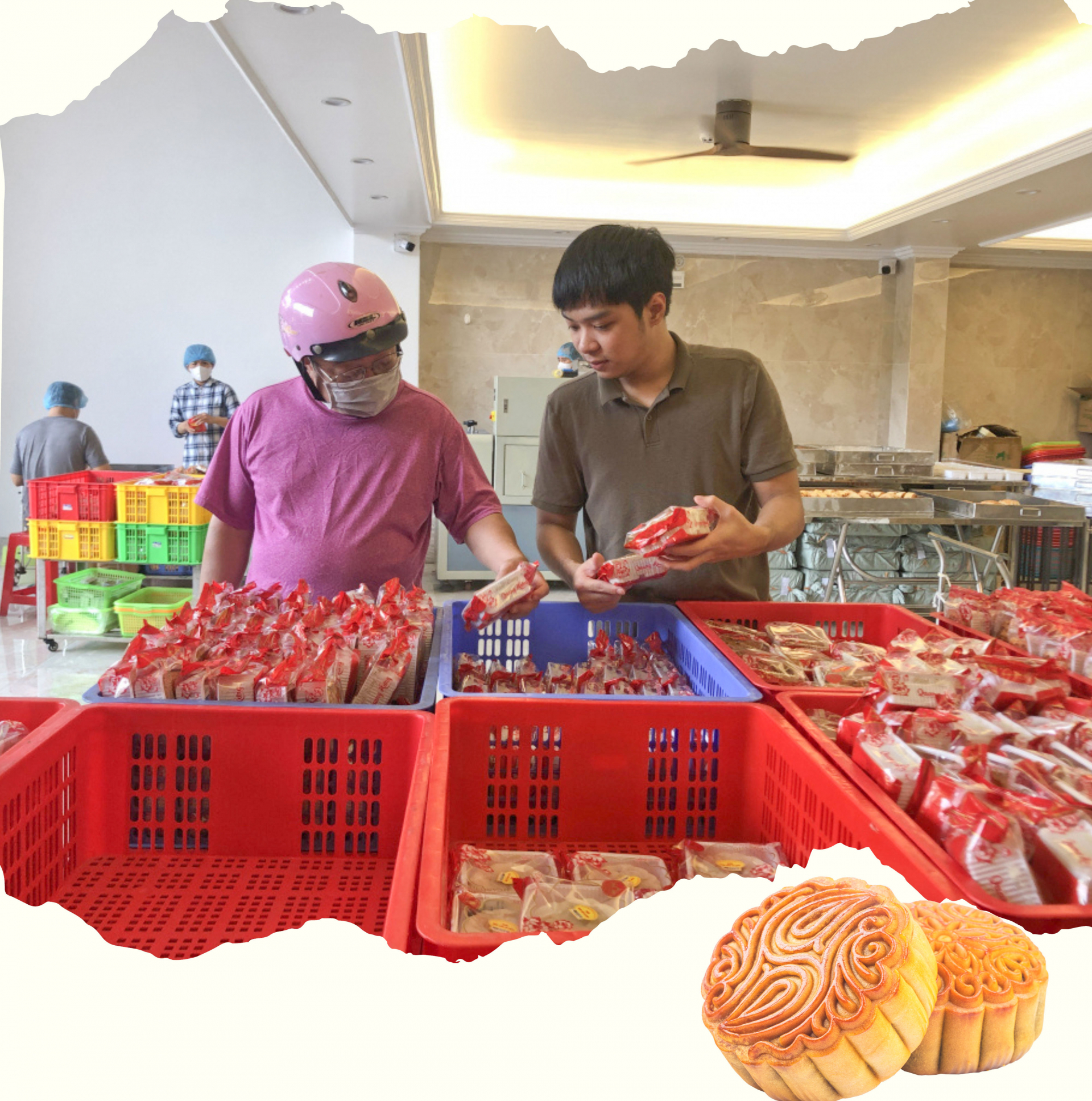 | Từ tháng 7 âm lịch, các cơ sở sản xuất bánh trung thu đã bắt đầu làm bánh. |