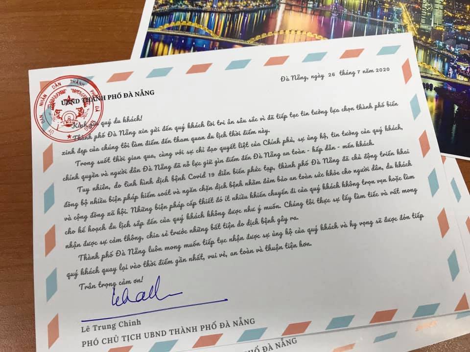 Cũng trong tối 26/7, lãnh đạo TP. Đà Nẵng đã gửi thư cho du khách vì những bất tiện do dịch COVID-19 gây ra.