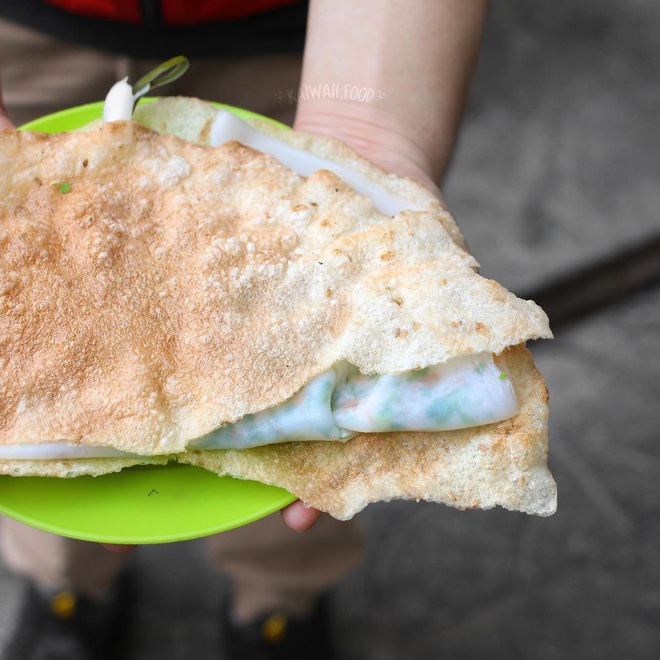 Bánh ngon nhất khi ăn nóng. Độ giòn tan của bánh đa kết hợp độ dẻo mịn của bánh ướt với phần nhân mỡ hành đậm đà khiến thực khách ăn một lần nhớ mãi (Ảnh: @kawai.food).