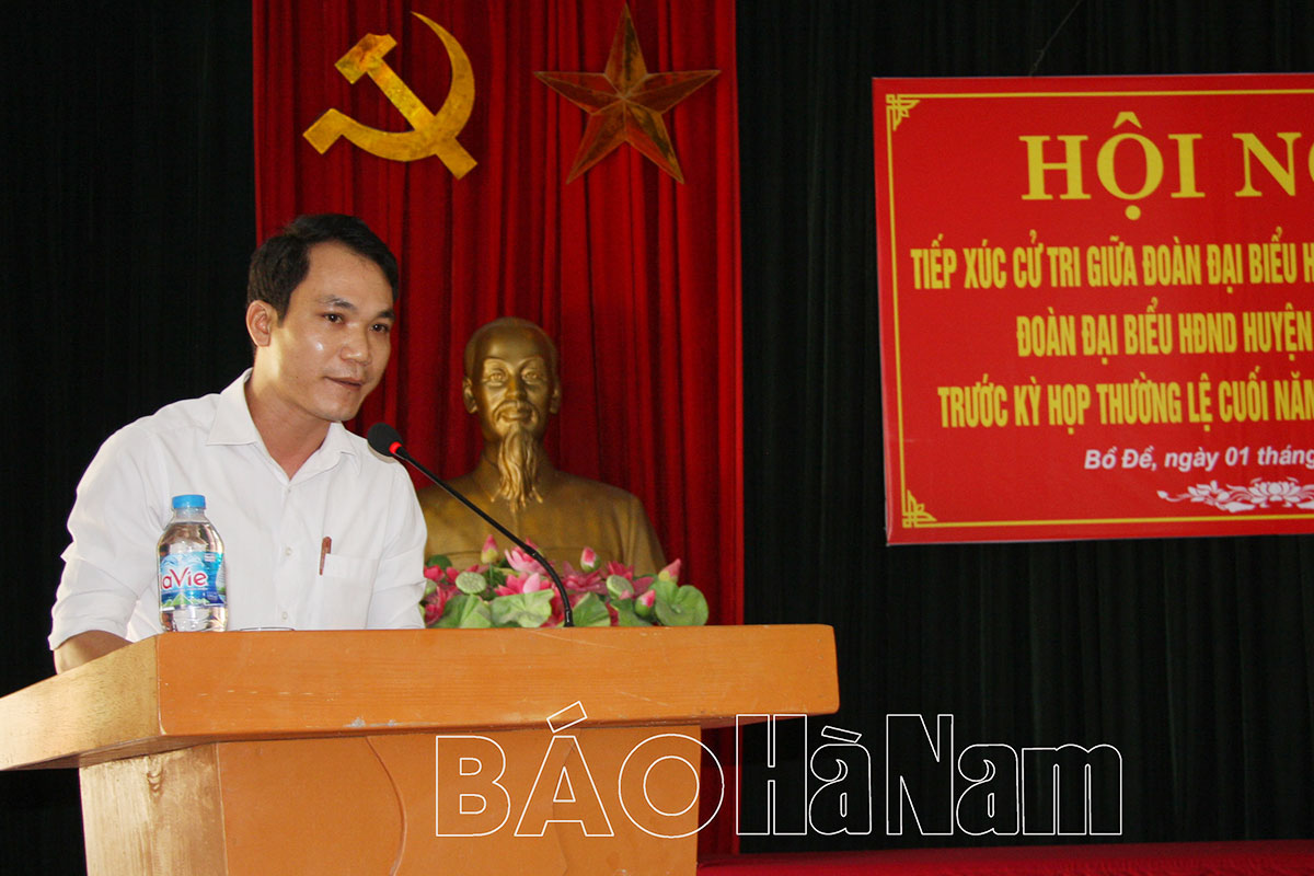 Cử tri xã Bồ Đề bày tỏ vui mừng, phấn khởi trước những kết quả đạt được trong phát triển KT-XH của tỉnh, huyện năm 2022, đồng thời phát biểu ý kiến, kiến nghị với HĐND tỉnh, huyện một số vấn đề. Trong đó, đề nghị các cấp ngành chức năng quan tâm đầu tư, tôn tạo Khu di tích lịch sử quốc gia Đình Triều Hội trên địa bàn xã đã và đang xuống cấp. Cùng đó quan tâm nâng mức hỗ trợ xây dựng nhà văn hóa thôn theo yêu cầu nông thôn mới nâng cao do giá nguyên, vật liệu tăng cao, các thôn xóm gặp khó khăn trong việc sửa chữa, nâng cấp. Việc hỗ trợ nông dân đầu tư mua máy cấy cũng cần bảo đảm phù hợp với thực tế sản xuất nông nghiệp địa phương; việc đầu tư xây dựng các công trình thủy lợi trên địa bàn nhằm phục vụ tích cực yêu cầu sản xuất nông nghiệp của xã và các xã lân cận…