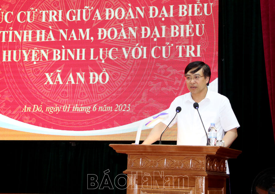 Thay mặt đoàn đại biểu HĐND tỉnh, đồng chí Đặng Thanh Sơn, Ủy viên BTV Tỉnh ủy, Phó Chủ tịch Thường trực HĐND tỉnh cảm ơn các ý kiến đóng góp, của cử tri và trao đổi làm rõ thêm những nội dung mà cử tri kiến nghị, quan tâm. Với quan điểm, Bình Lục vẫn là huyện trọng điểm về sản xuất nông nghiệp nên Bình Lục là địa phương đảm bảo an ninh lương thực của tỉnh. Vì thế, huyện sẽ được hưởng nguồn hỗ trợ đầu tư từ nguồn ngân sách tập trung của tỉnh để thực hiện các nhiệm vụ phát triển kinh tế xã hội, xây dựng hạ tầng nông nghiệp, nông thôn… Vấn đề giao thầu đất 5% ở tỉnh thời gian qua sau khi hết thời hạn hợp đồng dừng lại không ký tiếp, đặc biệt trong năm 2022, khi ở một số nơi phát hiện và xử lý những sai phạm về đất đai như thị trấn Ba Sao, huyện Kim Bảng liên quan đến việc giao đất không đúng thẩm quyền, thời gian, thủ tục… Tỉnh đã giao các địa phương rà soát toàn bộ đất 5% để báo cáo. Từ đây, các địa phương dừng lại việc giao thầu đất 5%, chờ hướng dẫn của cấp trên để thực hiện thủ tục tổ chức đấu thầu. Chuyện này không riêng An Đổ mà diễn ra ở nhiều nơi trên địa bàn tỉnh. Đối với An Đổ, việc này đã được báo cáo huyện, huyện đã báo cáo các sở chức năng và UBND tỉnh, nhưng đến giờ tỉnh vẫn chưa có hướng dẫn, vì thế Đoàn đại biểu HĐND tỉnh, sẽ tiếp thu ý kiến của cử tri để tổng hợp cùng với các ý kiến cử tri các địa phương khác yêu cầu UBND tỉnh giải trình vào kỳ họp cuối năm.