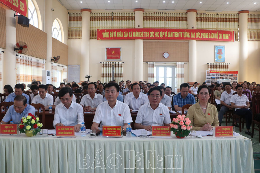 *Đoàn do đồng chí Lê Thị Thủy, Ủy viên Trung ương Đảng, Bí thư Tỉnh ủy, Chủ tịch HĐND tỉnh làm trưởng đoàn đã có buổi tiếp xúc với cử tri các xã: Xuân Khê, Nhân Bình, Nhân Mỹ (huyện Lý Nhân). Cùng dự có đại diện lãnh đạo UBND tỉnh; lãnh đạo Uỷ ban MTTQ tỉnh; các vị đại biểu HĐND tỉnh khóa XIX; lãnh đạo một số sở, ban, ngành có liên quan; lãnh đạo các Văn phòng: Tỉnh ủy, Đoàn ĐBQH và HĐND, UBND tỉnh; Thường trực Huyện ủy, HĐND, UBND, Uỷ ban MTTQ huyện Lý Nhân...