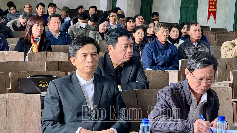 Cử tri các xã Liên Bảo, Cộng Hòa (Vụ Bản) nêu ý kiến, kiến nghị các nội dung liên quan đến lĩnh vực: vệ sinh môi trường nông thôn, điện chiếu sáng, đầu tư cho hệ thống giao thông nội đồng, phục vụ sản xuất nông nghiệp trong xây dựng nông thôn mới nâng cao, kiểu mẫu; tình trạng ô nhiễm môi trường. Trong đó, cử tri xã Liên Bảo đề nghị về việc đầu tư xây dựng cầu Ruộc qua sông Chanh kết nối đường trục qua UBND xã với Quốc lộ 10 và Quốc lộ 485B. Cầu được xây dựng từ năm 1970, đến nay đã xuống cấp, tiềm ẩn nguy cơ mất an toàn cho người và phương tiện tham gia giao thông. Cử tri xã Cộng Hòa phản ánh, xã có kế hoạch xây dựng cụm dân cư tập trung tại khu Bối Xuyên Bùi, nhân dân đồng thuận sẵn sàng giao mặt bằng cho dự án; song 3 năm nay dự án chưa triển khai nên đề nghị tỉnh xem xét, chỉ đạo đẩy nhanh tiến độ dự án, phục vụ phát triển kinh tế - xã hội và đời sống nhân dân.