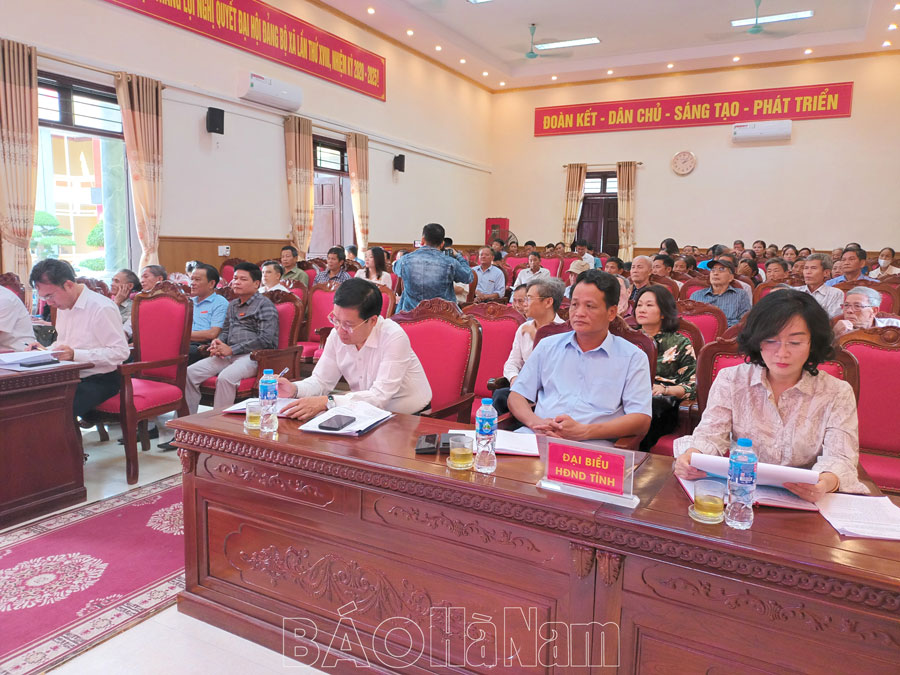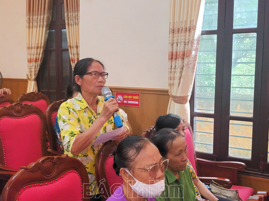 Cử tri địa phương bày tỏ vui mừng, phấn khởi trước những kết quả đạt được trong phát triển KT-XH của tỉnh năm 2023, đồng thời phát biểu ý kiến, kiến nghị với HĐND tỉnh, huyện một số vấn đề cụ thể như: Đề nghị tỉnh tiếp tục quan tâm đầu tư kè hai đoạn triền đê ven sông Đáy địa phận thị trấn Quế (đoạn từ trường THPT Kim Bảng A xuống đến Trạm bơm trục đứng và đoạn từ Đình Đanh Xá Hạ thuộc tổ 7 của thị trấn đến địa phận giáp ranh với thôn Đanh Xá - xã Ngọc Sơn). Đề nghị tỉnh hỗ trợ kinh phí tu sửa các nhà văn hóa thôn, tổ dân phố không sáp nhập trên địa bàn huyện và tăng mức hỗ trợ đối với việc đầu tư xây mới hoặc sửa chữa các nhà văn hóa thôn, tổ dân phố.