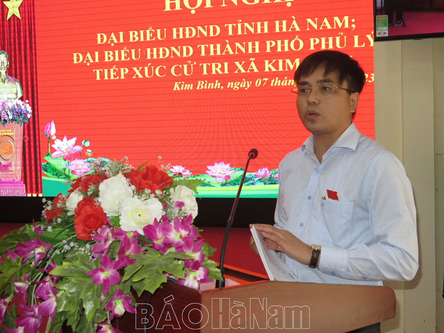 Tại hội nghị, sau khi nghe đại diện tổ đại biểu HĐND tỉnh báo cáo các nội dung, chương trình kỳ họp, đại biểu cử tri xã Kim Bình phát biểu đề xuất, kiến nghị các cấp lãnh đạo quan tâm mở rộng đoạn đường đê giữa hai đầu dốc thôn Kim Thượng (khoảng 120m), vì đường nhỏ hẹp, xuống cấp đã nhiều năm, không đảm bảo an toàn cho các phương tiện tham gia giao thông; mở rộng đường 21B cũ, đoạn từ dốc UBND xã Kim Bình đến thôn Kim Thượng, vì đường hẹp, nhiều ô tô tải trọng lớn lưu thông qua địa bàn; quan tâm xây dựng bờ kè chắn sóng sông Đáy (đoạn từ khu dân cư xóm 2 thôn Kim Thượng đến khu dân cư xóm 18, thôn Kim Thanh), vì hiện nay, có nhiều đoạn ở khu dân cư bị sạt lở, tiềm ẩn nguy cơ mất an toàn cho các hộ dân sinh sống ven sông. Đề nghị tỉnh, thành phố hỗ trợ cho Trạm y tế xã về trang thiết bị phục vụ công tác khám chữa bệnh cho nhân dân; quan tâm; đề nghị tỉnh chỉ đạo thành lập Ban quản lý cụm công nghiệp xã Kim Bình để quản lý hoạt động của các doanh nghiệp trong cụm công nghiệp; đề nghị tỉnh chỉ đạo nhà máy nước sạch Kim Bảng cung cấp nước sạch cho nhân dân phải đảm bảo tiêu chuẩn, chất lượng. Đề nghị tỉnh sớm triển khai dự án khu thương mại, dịch vụ đã quy hoạch tại địa bàn; quan tâm đầu tư tu sửa đường giao thông xuống cấp, kênh mương trên địa bàn, đảm bảo việc tiêu úng kịp thời; với các hộ dân hiến đất làm đường giao thông, đề nghị các cấp, ngành chức năng giúp người dân làm lại sổ đỏ cho phù hợp…