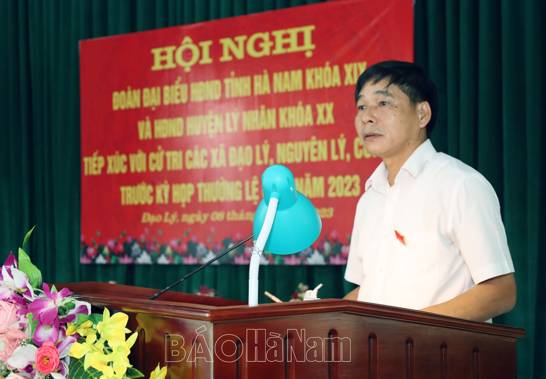 * Tại huyện Lý Nhân, tổ đại biểu HĐND tỉnh do đồng chí Nguyễn Anh Chức, Ủy viên BTV Tỉnh ủy, Phó Chủ tịch Thường trực UBND tỉnh làm trưởng đoàn đã về tiếp xúc đại diện cử tri các xã Đạo Lý, Nguyên Lý và Công Lý.