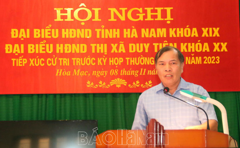 Chiều 8/11, thực hiện chương trình tiếp xúc cử tri trước Kỳ họp thường lệ cuối năm 2023, đại biểu HĐND tỉnh đã chia Tổ về một số xã, phường, thị trấn của các huyện: Thanh Liêm, Lý Nhân và thị xã Duy Tiên báo cáo nội dung, chương trình kỳ họp và nắm bắt tâm tư, nguyện vọng, ý kiến, kiến nghị của cử tri và nhân dân.