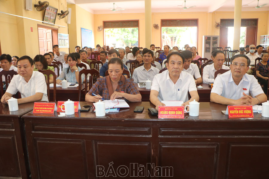 Thay mặt Tổ đại biểu HĐND tỉnh và huyện về dự buổi tiếp xúc cử tri, đồng chí Trần Đức Thuấn, Bí thư Huyện ủy, Chủ tịch HĐND huyện Lý Nhân trân trọng tiếp thu toàn bộ nội dung cử tri địa phương kiến nghị; trả lời một số nội dung: đã báo cáo tỉnh có ý kiến cho huyện khai thác, sử dụng diện tích đất tại vị trí của Chi cục Thuế cũ của huyện; làm rõ cơ chế, chính sách về mức chi thường xuyên cho cán bộ không chuyên trách; tập trung chỉ đạo giải quyết những tồn tại trong việc cấp giấy chứng nhận quyền sử dụng đất cho nhân dân, trước mắt đối với hộ còn tồn đọng, đủ điều kiện được cấp, các hộ dân không nằm trong các dự án…Đồng thời, có kiến nghị ngay với các cấp, ngành nghiên cứu, xem xét trả lời, giải quyết kịp thời, thỏa đáng những ý kiến, kiến nghị của cử tri địa phương theo đúng thẩm quyền trong thời gian sớm nhất.