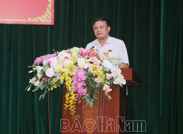 Thay mặt Tổ đại biểu HĐND tỉnh, đồng chí Lê Hồng Quân, Ủy viên BTV Tỉnh ủy, Chủ nhiệm UBKT Tỉnh ủy, Trưởng Ban Pháp chế HĐND tỉnh ghi nhận và tiếp thu, trả lời trực tiếp các ý kiến, kiến nghị của cử tri thuộc thẩm quyền. Đồng thời khẳng định tổ đại biểu HĐND tỉnh sẽ tổng hợp, phản ánh trung thực, đầy đủ các ý kiến, kiến nghị của cử tri tổ dân phố đến HĐND tỉnh, các cơ quan có thẩm quyền xem xét, giải quyết, đáp ứng nhu cầu, nguyện vọng chính đáng của nhân dân và thông tin một số vấn đề về thế giới và trong nước tác động đến việc phát triển KT-XH của tỉnh Hà Nam để cử tri nắm rõ cùng cấp ủy, chính quyền các cấp chung sức, đồng lòng thực hiện hiệu quả các chủ trương, chính sách pháp luật của Đảng, Nhà nước.