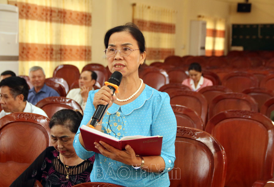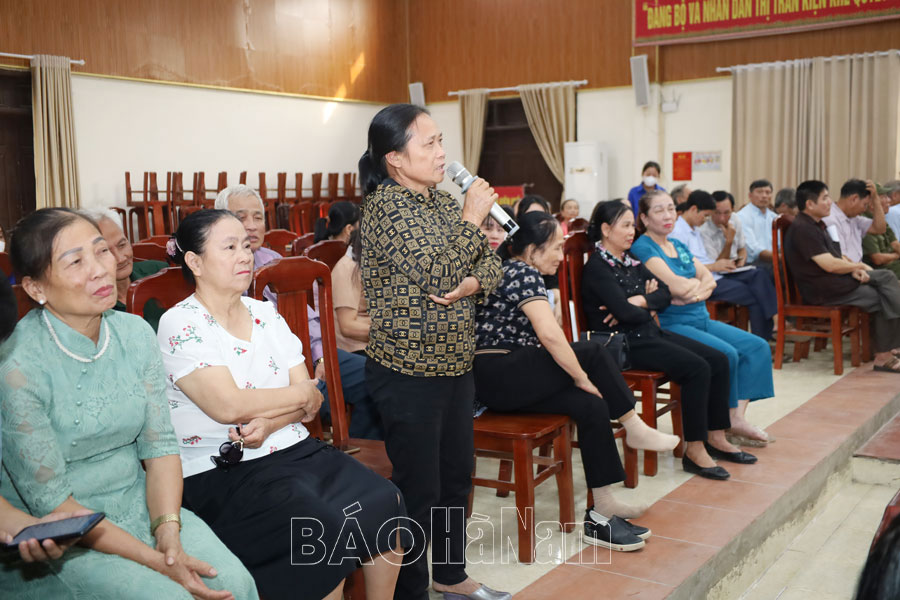 Sau khi nghe đại diện tổ đại biểu HĐND tỉnh báo cáo dự kiến thời gian, nội dung, chương trình kỳ họp, kết quả thực hiện nhiệm vụ phát triển kinh tế - xã hội năm 2024 và phương hướng, nhiệm vụ phát triển kinh tế- xã hội năm 2025 của tỉnh, cử tri phường Yên Bắc nêu một số ý kiến, kiến nghị: đề nghị tỉnh chỉ đạo cơ quan chức năng kiểm tra, thanh tra một số doanh nghiệp, nhà máy xả khí thải không đúng quy định tại Khu công nghiệp Đồng Văn I, Đồng Văn II gây ô nhiễm môi trường, ảnh hưởng đến cuộc sống người dân; quan tâm đẩy nhanh tiến độ thực hiện các dự án sau giải phóng mặt bằng, tránh để đất hoang hóa, gây bức xúc trong nhân dân; đẩy nhanh tiến độ cấp giấy chứng nhận quyền sử dụng đất; quan tâm đầu tư kinh phí xây dựng một số tuyến đường tại khu dân cư, nhà văn hóa tổ dân phố; chỉ đạo ngành chức năng tăng cường kiểm tra, xử lý nghiêm tình trạng xe chở quá khổ, quá tải chạy qua đường ĐH 05.