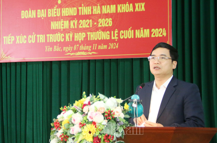 Tại hội nghị tiếp xúc cử tri, đại diện tổ đại biểu HĐND tỉnh đã báo cáo với cử tri: dự kiến nội dung chương trình Kỳ họp thường lệ cuối năm; kết quả thực hiện nhiệm vụ phát triển KT-XH của tỉnh năm 2024, phương hướng, nhiệm vụ phát KT-XH năm 2025; kết quả giải quyết ý kiến, kiến nghị của cử tri trên địa bàn huyện Lý Nhân tại kỳ họp giữa năm HĐND tỉnh.
