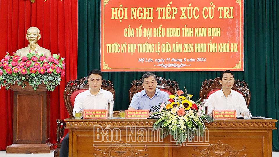 | Đồng chí Trần Lê Đoài, TUV, Phó Chủ tịch UBND tỉnh và các đại biểu HĐND tỉnh tại buổi tiếp xúc cử tri huyện Mỹ Lộc. |