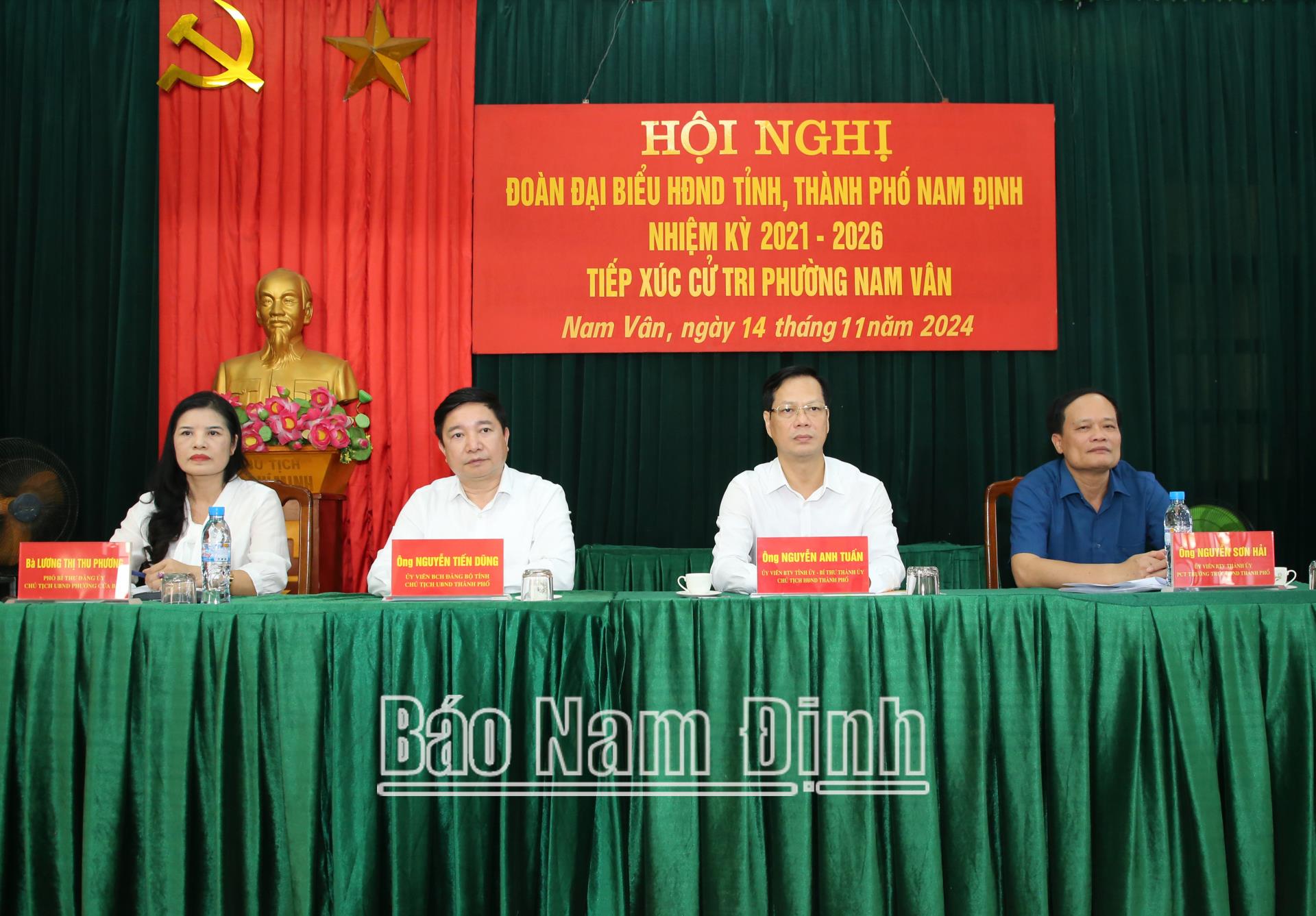 | Đồng chí Nguyễn Anh Tuấn, Ủy viên Ban TVTU, Bí thư Thành ủy, Chủ tịch HĐND thành phố Nam Định và các đại biểu HĐND tỉnh, đại biểu HĐND thành phố Nam Định tham dự hội nghị tiếp xúc cử tri phường Nam Vân. |
