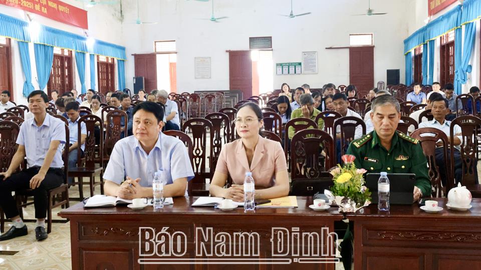 | Các đồng chí: Hoàng Nguyên Dự, Ủy viên Ban TVTU, Trưởng ban Nội chính Tỉnh ủy; Mai Thanh Long, TUV, Phó Chủ tịch HĐND tỉnh và các đại biểu dự hội nghị tiếp xúc cử tri huyện Giao Thủy. |