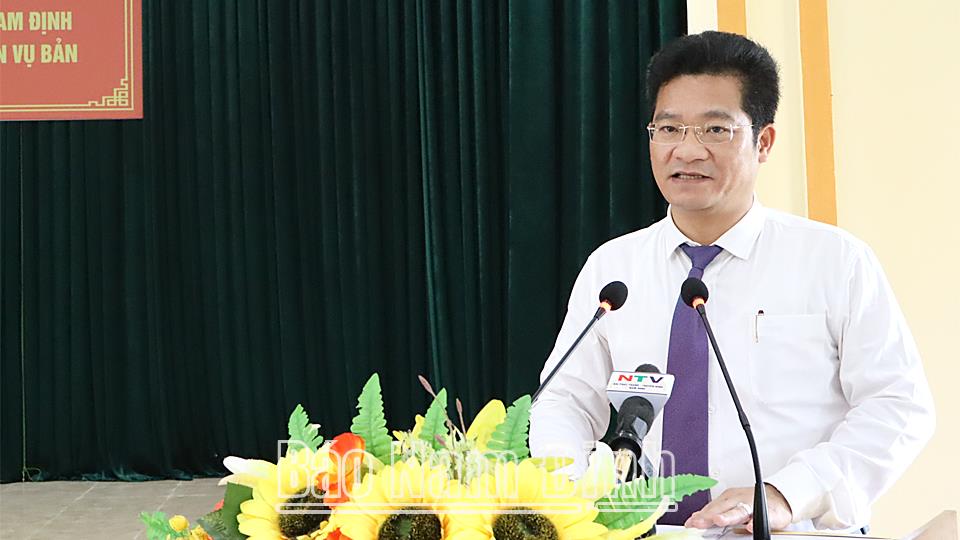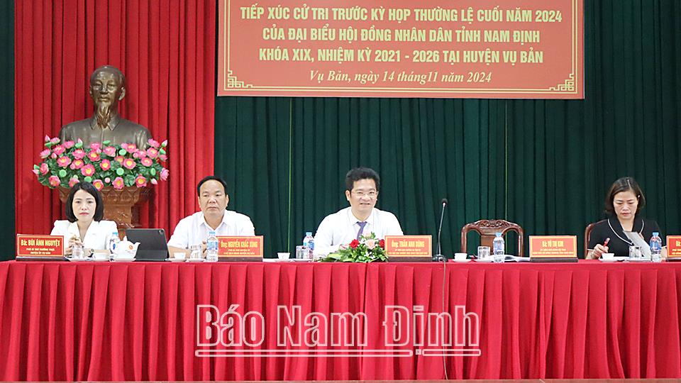 | Đồng chí Trần Anh Dũng, Ủy viên Ban TVTU, Phó Chủ tịch Thường trực UBND tỉnh và các đại biểu HĐND tỉnh đã tiếp xúc cử tri huyện Vụ Bản. |