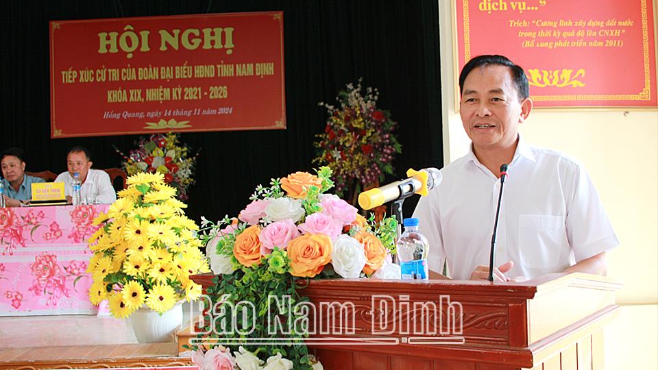 Tại các điểm tiếp xúc cử tri, đại diện Tổ đại biểu HĐND tỉnh đã thông tin tới cử tri về kết quả thực hiện nhiệm vụ phát triển kinh tế - xã hội năm 2024 và kế hoạch phát triển kinh tế - xã hội năm 2025. Theo đó, kỳ họp thường lệ cuối năm 2024, HĐND tỉnh dự kiến tổ chức trong 2 ngày 9 và 10/12/2024. Kỳ họp sẽ thông qua các báo cáo của UBND tỉnh; báo cáo của HĐND, các ban HĐND tỉnh, báo cáo của các cơ quan tư pháp, xem xét thông qua các đề án, nghị quyết quan trọng về các vấn đề phát triển kinh tế - xã hội của tỉnh. Kỳ họp cũng tiến hành thảo luận, trả lời ý kiến, kiến nghị của cử tri gửi tới HĐND tỉnh…. Năm 2024, kinh tế của tỉnh tiếp tục có bước phát triển cả về quy mô và chất lượng tăng trưởng. Các chỉ tiêu kinh tế đạt mức tăng trưởng khá so với cùng kỳ năm 2023, một số chỉ tiêu cao hơn bình quân chung của cả nước. Tổng sản phẩm GRDP ước tăng 10,35% (cao nhất từ trước đến nay). Sản xuất nông nghiệp phát triển ổn định, tỉnh Nam Định tiếp tục là điểm sáng trong cả nước về xây dựng nông thôn mới (NTM) và đang tiếp tục tập trung xây dựng NTM kiểu mẫu. Đến nay, toàn tỉnh có 157/161 (đạt 97,5%) xã, thị trấn đạt chuẩn NTM nâng cao và 41/146 (đạt 28,1%) xã đạt chuẩn NTM kiểu mẫu; huyện Giao Thủy đạt chuẩn NTM nâng cao năm 2023. Hệ thống kết cấu hạ tầng kinh tế - xã hội, đặc biệt là hệ thống đường giao thông, các khu, cụm công nghiệp tiếp tục được quan tâm đầu tư và tập trung chỉ đạo đôn đốc đẩy nhanh tiến độ, nhiều dự án trọng điểm đã hoàn thành hoặc đang tích cực triển khai để sớm hoàn thành. Công tác cải cách hành chính, xây dựng chính quyền điện tử, đô thị thông minh và chuyển đổi số tiếp tục được quan tâm thực hiện. Hiệu lực, hiệu quả quản lý Nhà nước được nâng lên, công tác phân cấp, ủy quyền được đẩy mạnh. Nam Định là một trong 3 tỉnh đầu tiên trong cả nước được Ủy ban Thường vụ Quốc hội thông qua Nghị quyết về sắp xếp đơn vị hành chính cấp huyện, cấp xã giai đoạn 2023-2025 và là tỉnh đầu tiên trong cả nước hoàn thành sắp xếp đơn vị hành chính cấp huyện, cấp xã với số lượng lớn. Các lĩnh vực văn hóa, xã hội tiếp tục phát triển toàn diện và đạt nhiều thành tựu mới. An sinh xã hội được đảm bảo. An ninh chính trị, trật tự, an toàn xã hội được giữ vững.