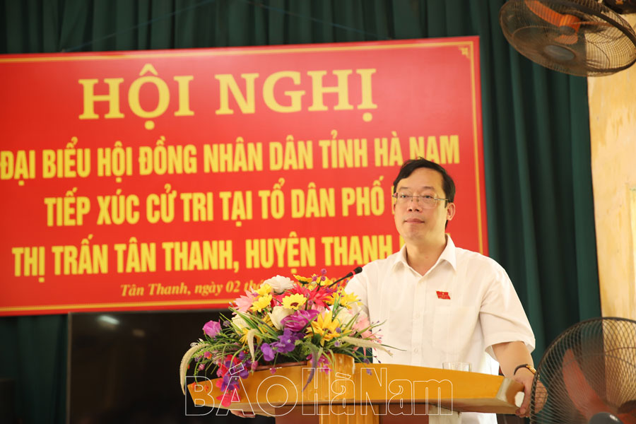 *Sáng 2/6, tại Nhà văn hóa tổ dân phố Lã, Đoàn đại biểu HĐND tỉnh do đồng chí Nguyễn Minh Tiến, Tỉnh ủy viên, Bí thư Huyện ủy, Chủ tịch HĐND huyện Thanh Liêm làm trưởng đoàn đã có buổi tiếp xúc cử tri thị trấn Tân Thanh, huyện Thanh Liêm. Cùng dự có lãnh đạo các sở, ban, ngành liên quan, cấp ủy, chính quyền địa phương.