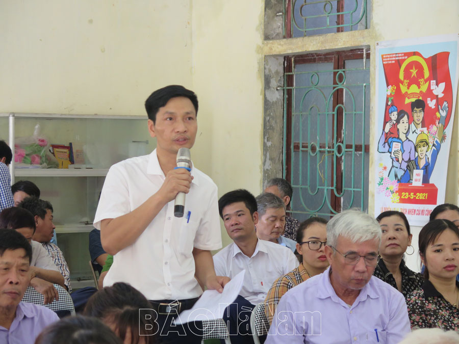 Phát biểu tại buổi tiếp xúc, các cử tri thể hiện sự phấn khởi trước những kết quả đạt được của tỉnh trong những tháng đầu năm, đồng tình với dự kiến nội dung, chương trình kỳ họp HĐND tỉnh giữa năm. Cùng đó có 6 cử tri đã nêu những ý kiến, kiến nghị với đại biểu HĐND tỉnh về một số vấn đề liên quan đến đời sống dân sinh. Về lĩnh vực đất đai cử tri ý kiến mức bồi thường đất thu hồi thấp; thu đất không đổi đất; đề nghị hợp thức hóa đất xen kẹp trong khu dân cư; Chưa có hướng dẫn cụ thể về cho thuê đất công ích;…Về lĩnh vực nông nghiệp cử tri đề nghị có chính sách khuyến khích phát triển sản xuất nông nghiệp; hỗ trợ chuyển gieo sạ sang máy cấy; hỗ trợ thuốc diệt chuột, chỉ đạo ra quân diệt chuột; Quan tâm nhiều hơn nữa để HTXDVNN làm tốt dịch vụ tưới tiêu. Về môi trường, cử tri phản ánh ô nhiễm môi trường từ các công ty xi măng Xuân Thành, Thành Thắng. Ngoài ra còn phản ánh việc camera an ninh không hoạt động; đề nghị thời gian huấn luyện dân quân tránh thời gian làm mùa để tiện cho lực lượng tham gia; đề nghị tạo điều kiện để tiếp quản khu trường mầm non cũ không sử dụng nữa làm nhà văn hóa tổ phố,…