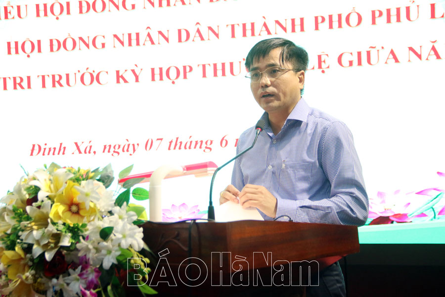Tại hội nghị tiếp xúc, đại diện tổ đại biểu HĐND tỉnh, đại biểu HĐND thành phố Phủ Lý đã báo cáo dự kiến thời gian, nội dung, chương trình kỳ họp thường lệ giữa năm 2024 HĐND tỉnh khóa XIX, HĐND thành phố khóa XIX nhiệm kỳ 2021 – 2026; báo cáo tóm tắt tình hình phát triển kinh tế - xã hội (KT - XH) 6 tháng đầu năm 2024, nhiệm vụ phát triển KT - XH 6 tháng cuối năm 2024 của tỉnh, thành phố; báo cáo kết quả giải quyết ý kiến, kiến nghị của cử tri tại kỳ họp thường lệ cuối năm 2023 HĐND tỉnh, HĐND thành phố.