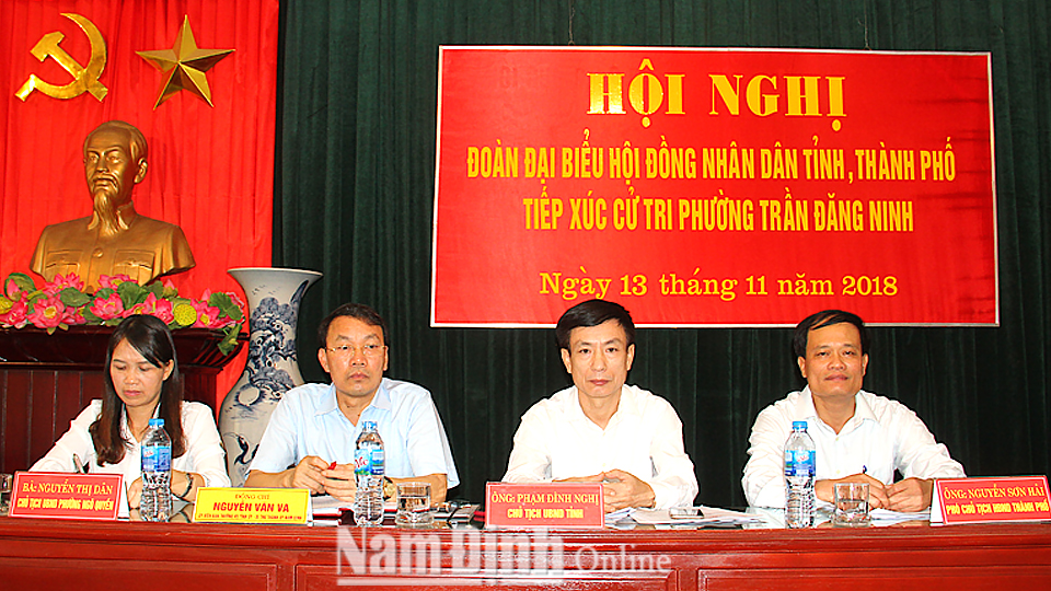 Ðồng chí Phạm Ðình Nghị, Phó Bí thư Tỉnh ủy, Chủ tịch UBND tỉnh và các đồng chí trong tổ đại biểu HÐND tỉnh đã tiếp xúc cử tri phường Trần Ðăng Ninh (TP Nam Ðịnh).