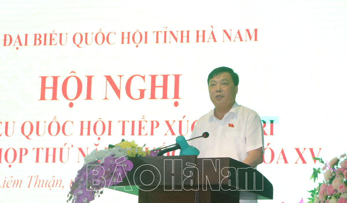 Chiều 5/5, Tổ đại biểu Quốc hội tỉnh gồm các đồng chí: Phạm Hùng Thắng, TUV, Phó Trưởng Đoàn ĐBQH tỉnh; Trần Văn Khải, Ủy viên Thường trực Ủy ban KHCN & Môi trường của Quốc hội; Trần Thị Hiền, Chủ tịch HĐQT, Giám đốc Công ty CP Xây dựng & Phát triển Hạ tầng kĩ thuật tỉnh Hà Nam tiếp xúc với cử tri xã Liêm Thuận (huyện Thanh Liêm). Cùng dự có đại diện Ủy ban MTTQ tỉnh, lãnh đạo một số sở, ban, ngành, đoàn thể của tỉnh cùng cấp ủy, chính quyền địa phương.