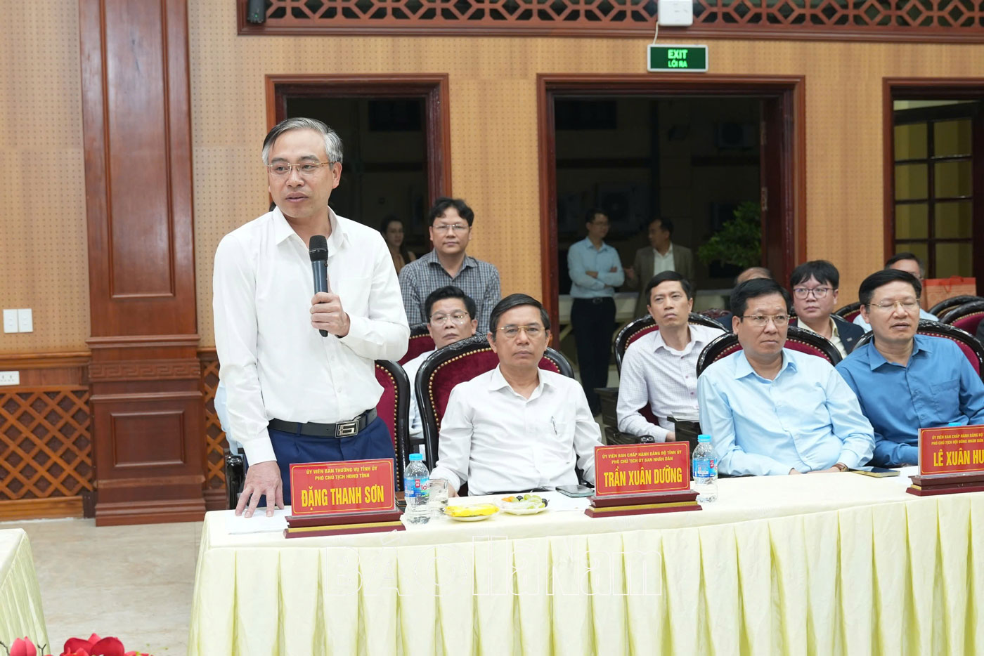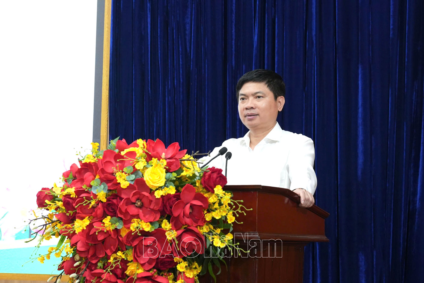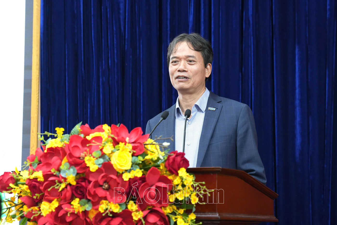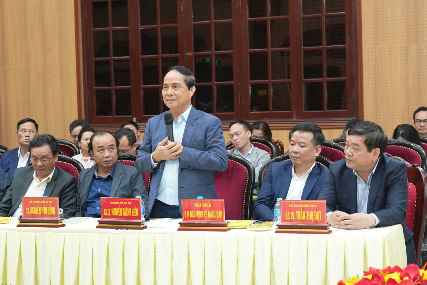 Đồng chí Bí thư Tỉnh ủy Trương Quốc Huy phát biểu tại hội nghị.GS, TS Phạm Hồng Chương, Giám đốc Đại học Kinh tế quốc dân phát biểu tại hội nghị.