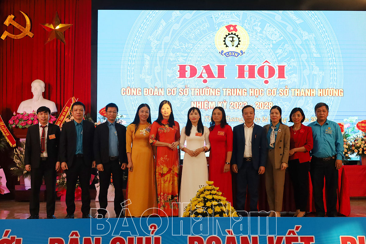 Các đại biểu chụp ảnh lưu niệm cùng Ban chấp hành CĐCS Trường THCS Thanh Hương, nhiệm kỳ 2023-2028.
