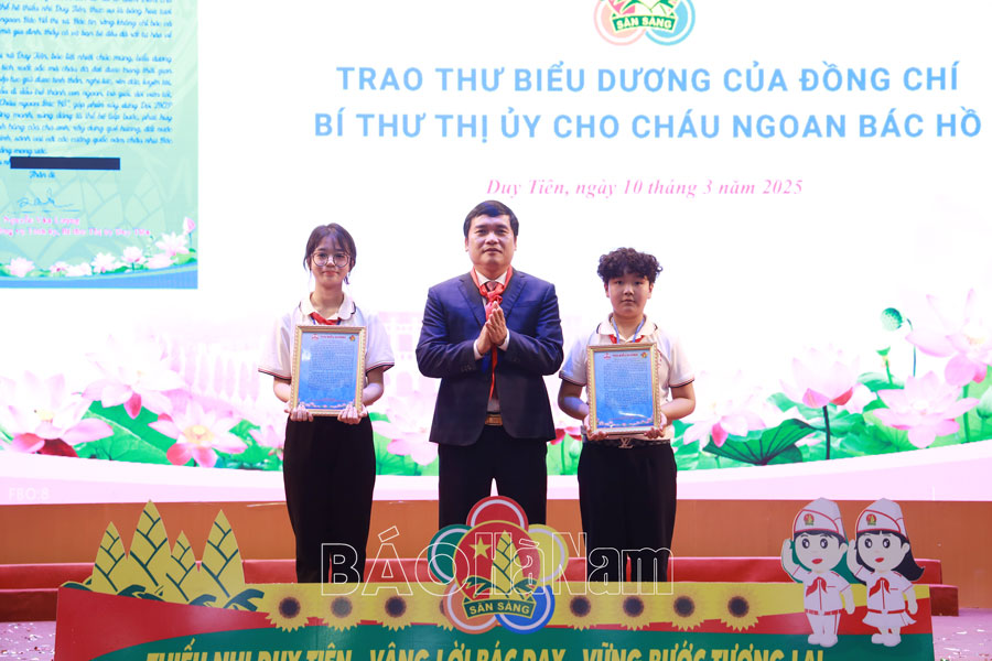 Tại Đại hội, Hội đồng Đội thị xã Duy Tiên đã biểu dương, khen thưởng, trao chứng nhận Cháu ngoan Bác Hồ cho 135 đại biểu thiếu nhi tiêu biểu; tặng giấy khen cho 10 giáo viên tổng phụ trách đội có thành tích xuất sắc trong công tác đội và phong trào thiếu nhi giai đoạn 2020 – 2025. Đồng thời, trao giải cho những thiếu nhi đạt giải cao tại Cuộc thi vẽ tranh “Thiếu nhi Duy Tiên làm theo 5 điều Bác Hồ dạy”. Hội Khuyến học thị xã cũng tặng quà cho 135 đại biểu Cháu ngoan Bác Hồ.