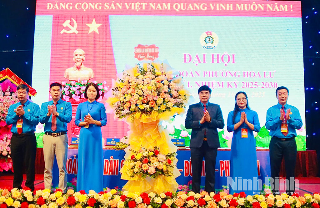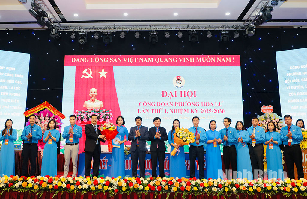 * Dự Đại hội Công đoàn phường Hoa Lư có đồng chí Nguyễn Xuân Hùng, Phó Chủ tịch Tổng Liên đoàn Lao động (LĐLĐ) Việt Nam; lãnh đạo LĐLĐ tỉnh, lãnh đạo phường Hoa Lư cùng 175 đại biểu ưu tú, đại diện cho hơn 9.000 đoàn viên công đoàn trên địa bàn phường.