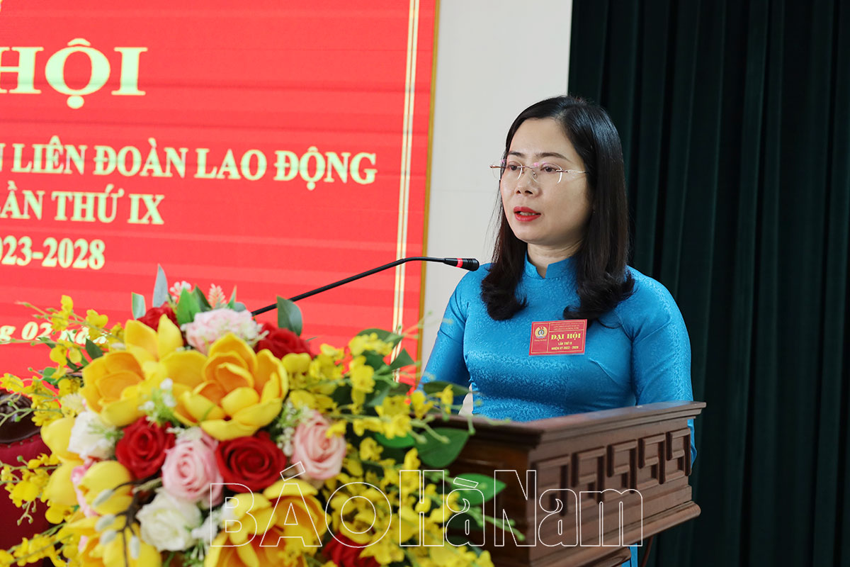 Đồng chí Phạm Thị Thu Giang, Phó Bí thư Đảng ủy LĐLĐ tỉnh phát biểu chỉ đạo tại đại hội.
