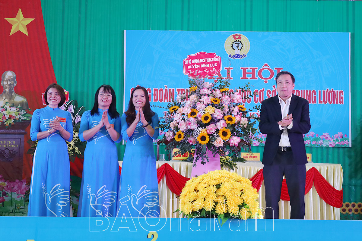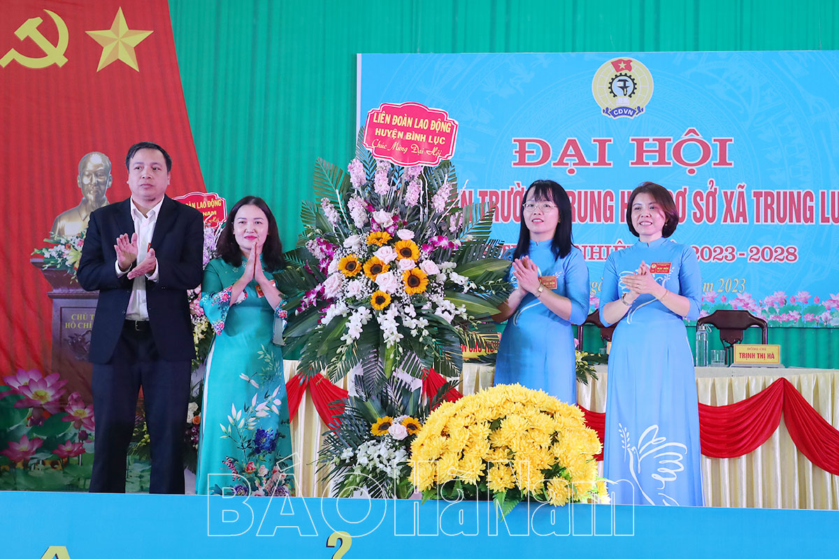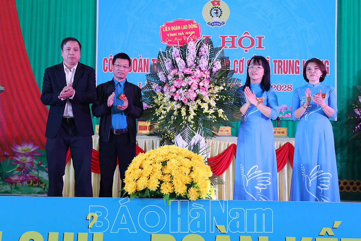 Lãnh đạo Liên đoàn Lao động huyện Bình Lục tặng hoa chúc mừng đại hội.