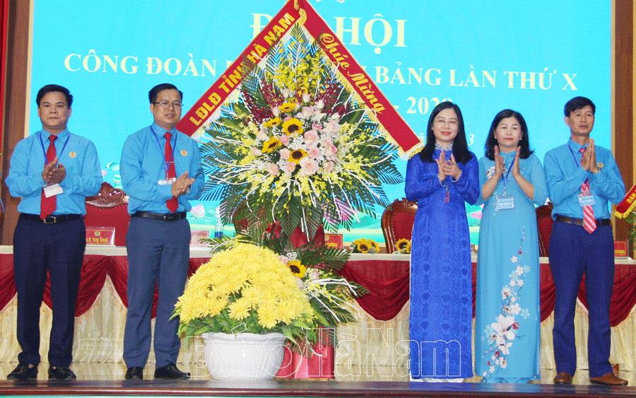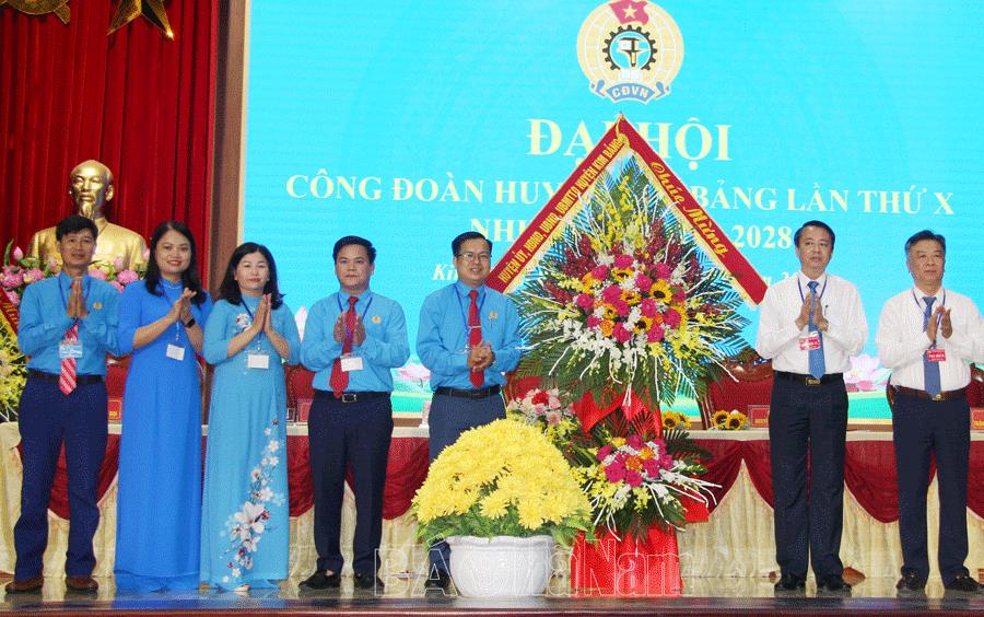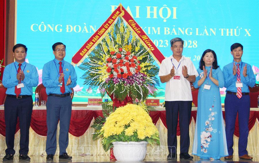 Đồng chí Đào Đình Tùng, Uỷ vên BTV Tỉnh ủy, Trưởng Ban Nội chínhTỉnh ủy tặng hoa chúc mừng đại hội.Lãnh đạo LĐLĐ tỉnh tặng hoa chúc mừng đại hội.Lãnh đạo Ban Dân vận Tỉnh ủy tặng hoa chúc mừng đại hội.Lãnh đạo Huyện ủy Kim Bảng tặng hoa chúc mừng đại hôi.