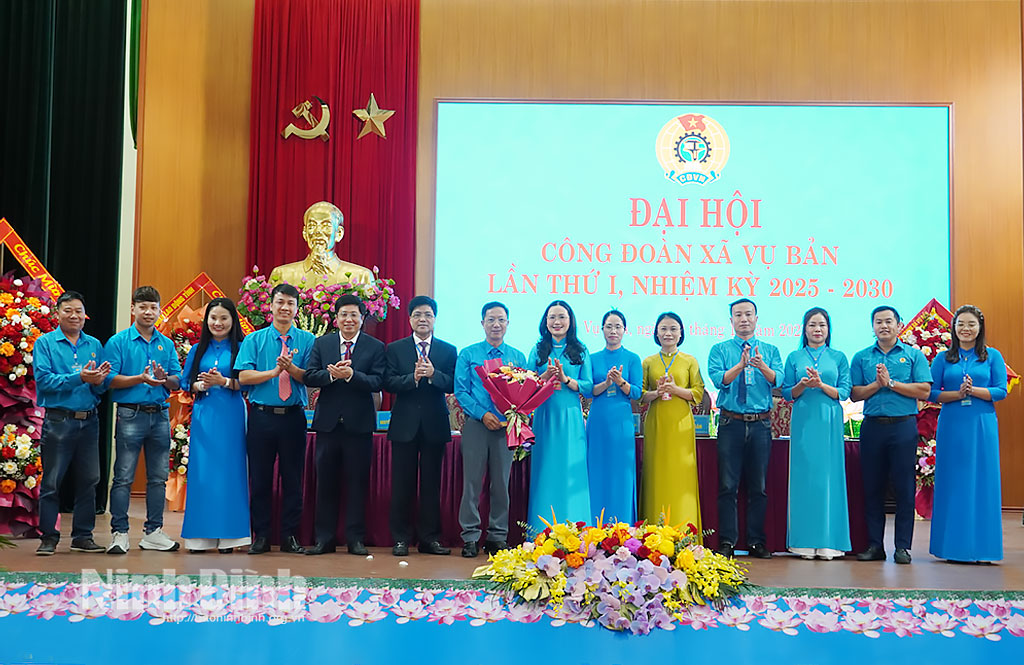 *Dự Đại hội Công đoàn xã Vụ Bản lần thứ I, nhiệm kỳ 2025-2030 có đồng chí Trần Minh Hoan, Tỉnh ủy viên, Bí thư Đảng ủy, Chủ tịch HĐND xã; lãnh đạo LĐLD tỉnh và 112 đại biểu ưu tú đại diện cho hơn 8.800 công nhân, viên chức, người lao động (NLĐ).